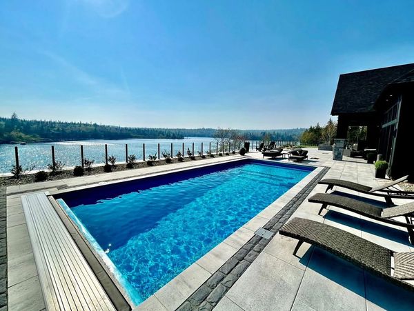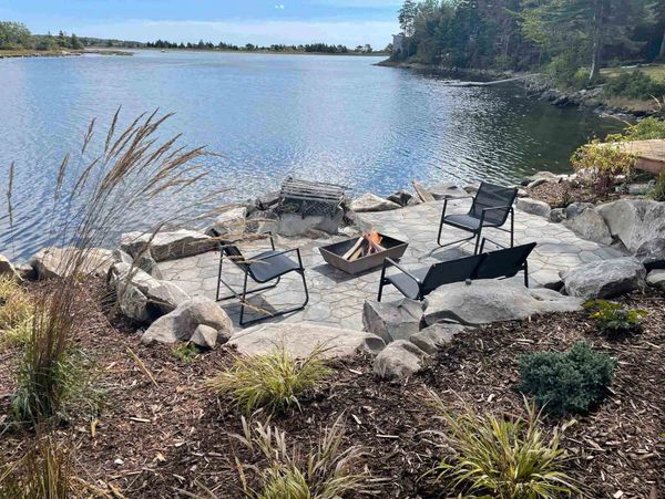 Description: New landscape for cottage renovated for Airbnb .New entrance steps and walkway, deck for enjoying afternoon sun, outdoor sauna, firepit terrace, deck and outdoor shower.