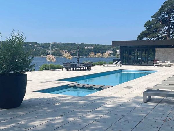 Description: Design of estate, outdoor dining and lounge terrace, pool terrace, paver driveway, parking courtyard, lighting, extensive planting